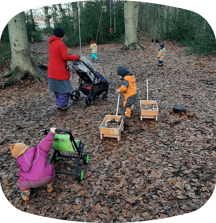 Mit freiem Spiel ist ein Spiel gemeint, das sich unbeeinflusst von lehrhaften und reflektierenden Eingriffen der Erwachsenen vollzieht. Im freien Spiel werden viele grundlegende Lebenskompetenzen erworben. Das Motto von allen Wald- und Waldorfkindergärten ist hierbei: Weniger ist mehr. Natürliches und freilassendes Spielzeug findet man in allen Waldorfkindergärten. Bei uns im Wald fällt dieses Spielzeug (nämlich Stöcker und Blätter verschiedenster Art) buchstäblich vom Himmel.